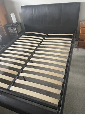 076 627 0040Ultimate in Luxurious Comfort and StyleHazlo High Quality Faux Leather bed base frame The base features posture-sprung slats for added comfort Make your bedtime more comfortable wi th this faux leather bed. 5ft wide 7ft long light wood posts with grey metal bed head and end. 157 W 200 L 89 H cm This same unique set is also available in other bed frame sizes single three quarter double queen king bed frames Its available to collect or cashEFT on delivery.